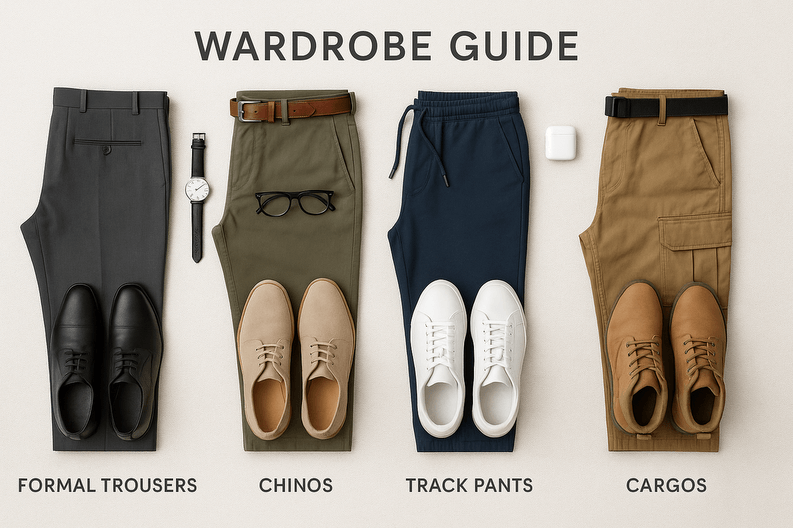 Every man needs at least one solid pair of formal trousers – the ones you pull out when life demands seriousness. Tailored cuts in navy, charcoal, or beige are timeless. Pair them with a crisp shirt or even a trendy polo for those semi-formal Fridays.